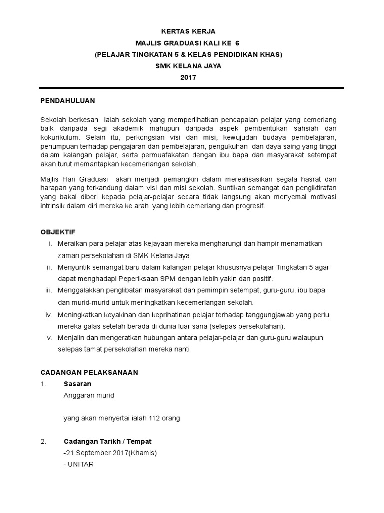 Kertas Kerja Majlis Graduasi 2017 Sekolah Pdf